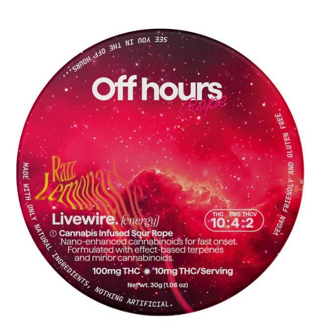 Off Hour | Livewire - Energy (Razz Lemonade) Live Resin Sour Rope | Edible | 10 x
