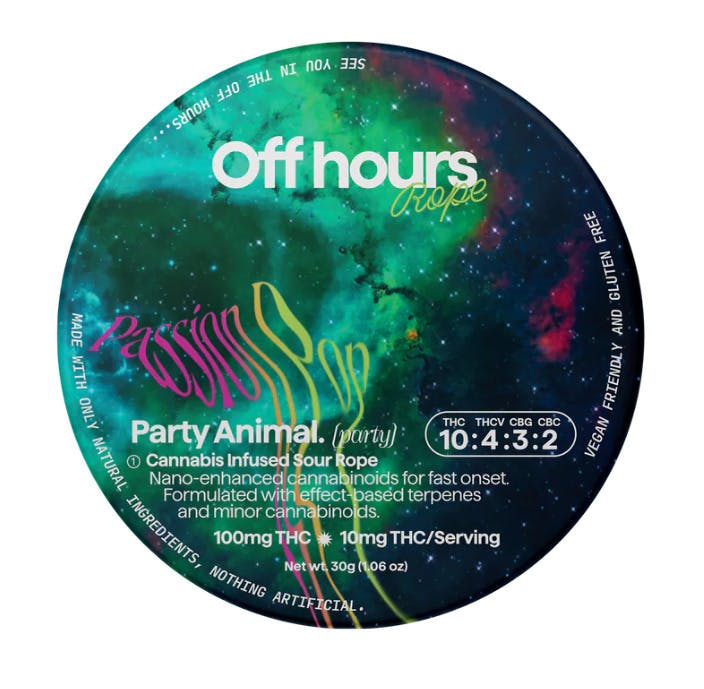 Off Hours | Party Animal - Energy (Passion Pop) Live Resin Sour Rope | Edible | 10 x