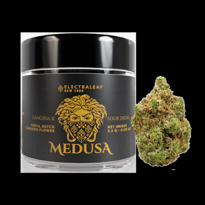 Medusa is beauty with a bite a hypnotic hybrid born from Zangria × Sour Diesel that turns heads and melts minds. This strain slithers between fruit and fuel, blending Zangria’s candy-coated sweetness with Sour Diesel’s unmistakable gassy funk. The aroma hits first tangy berries, citrus zest, and diesel vapors that sting the senses just right. The flavor follows in waves: sweet sangria and tropical fruit upfront, chased by a sharp diesel finish that lingers on the tongue like forbidden temptation. It’s loud, alluring, and just dangerous enough to keep you coming back for another hit.