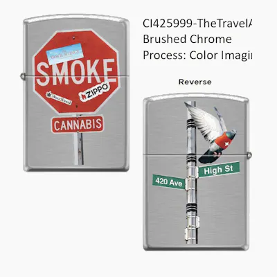 The Travel Agency is excited to introduce our limited-edition Cannabis Carrier Pigeon lighters, created in collaboration with Zippo and WeedFeed. Zippo’s nearly century-long legacy meets WeedFeed’s New York energy, brought together through craft, wit and New York sensibility. Trusted by birds and buds alike. Genuine Zippo windproof lighter with distinctive Zippo "click" All metal construction; windproof design works virtually anywhere Refillable for a lifetime of use; For optimum performance, we recommend genuine Zippo fuel, flints, and wicks. Made in USA; Lifetime guarantee that "it works or we fix it free™ " Fuel: Zippo lighter fuel (sold separately)