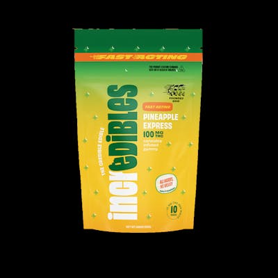 All hurry, no worry. Tropical sunshine, delicious juicy pineapple, and a faster onset to match your busy life. Quick, sweet, and to the point, incredibles Fast Acting Pineapple Express gummies are perfect for those in search of a swifter, more balanced edible experience. All aboard! Made with 100% pure cannabis oil in a perfectly blended mixture to ensure accurate dosing and consistency. Perfect for busy schedules and trying new things. Featuring a precision-dosed confection collection with yummy flavors, delicious effects and FDA-approved ingredients, you can trust incredibles to be the credible edible. Potential effects: Uplifting, mind-elevating Ten Gummies | 10mg THC | Pineapple Express Gummies are a form of edible cannabis typically made with cannabis extract or oil. Gummies are chewable and ingestible. A ratio defines how many mg of one cannabinoid there are against another cannabinoid in a single dose.