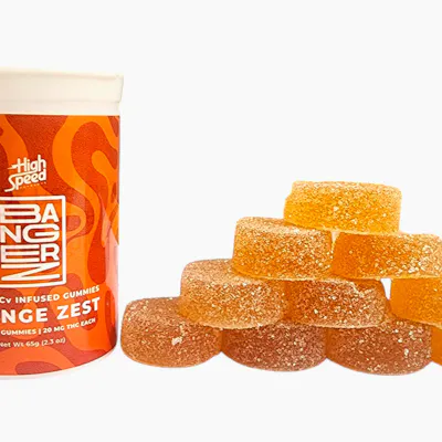 Power up with Bangerz, a bold Orange Zest gummy infused with THC and THCV for a stimulating and uplifting experience. Made with pectin for a smooth chew, Bangerz delivers vibrant citrus flavor with a potent kick. Per gummy (2 servings per gummy): THC: 20mg THCV: 10mg