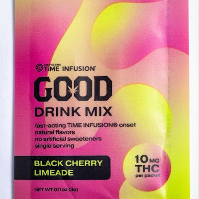 Stay high-drated with our new tantalizing Black Cherry Limeade drink mix. Thanks to the lightning-fast TiME INFUSION® technology, the effects kick in as swiftly as 5-15 minutes. The hydration is immediate. Made with bold natural flavors and absolutely no artificial sweeteners, each single-serving compostable packet packs a punch with 10mg of THC. Simply empty the pouch contents into 8oz of water (or your favorite beverage), give it a stir or shake, and savor the flavor while embracing the buzz.