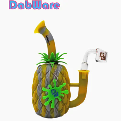 Dabware - Platinum Cured Silicone Pineapple Rig With Banger - Blue/Yellow