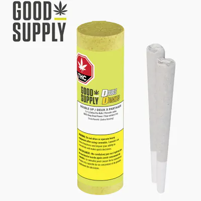 Double Up rotating sativa pre-rolls are high in THC with citrus flavours. Always fresh, never boring. Made with hang dried, milled whole flower, these pre-rolls are levelled up with a Dutch fold, tighter roll and better burn.