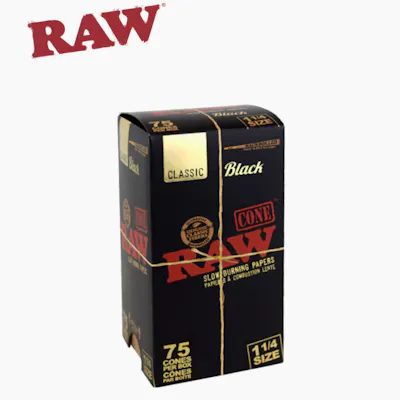 RAW - Black Pre-Rolled Cones - 1 1/4 - 75 Pack