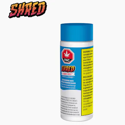 Introducing SHRED Shotz! Sip smart with Blue Razzberry, a bold and juicy 65ml shot-sized beverage with a very fast onset time of just 15 minutes*. Our really fancy fast-acting nanoemulsion tech (FAST) breaks the cannabis infusion down into tiny particles so your body can more easily digest them. Pair all that with a blue raspberry flavour and you've got a super quick and delicious beverage. *Onset defined in terms of mean blood concentrations. Onset times may vary.