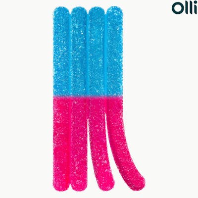 Packed with 30 mg of CBG and 10 mg of THC, and with a juicy fusion of Blue Raspberry and Pink Lemonade, our Olli Stikistix feature a chewy texture and a unique shape allowing you to split them into four strips.