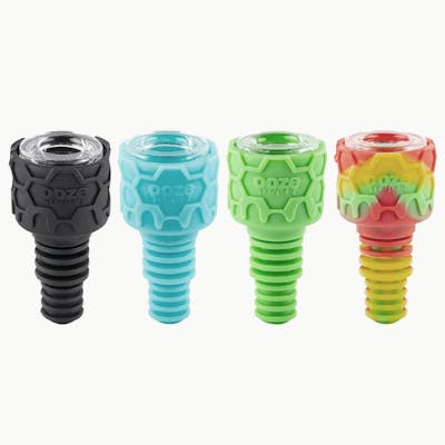 The Armor universal silicone bowl and mouthpiece attachment is a unique smoking accessory that finds a way to fit in any smokers collection. The rigged universal male bowl joint fits both 14mm and 18mm female jointed water pipes. Remove the glass bowl and you can also use the Armor to attach vaporizer cartridges! This allows for safer sharing as a mouthpiece, AND allows you to use your favourite bong or dab rig with your cartridge vaporizer, giving you the smoothest hit from a pen possible! Armor Bowl Features: Compatible With Most Vape Pens Fits Most Pipes & Bongs (14mm & 18mm) Heat Resistant Unbreakable Silicone Dishwasher Safe Borosilicate Glass Bowl Display of 12 Bowls What's in the Box: 12x - Ooze Armor Silicone Bowls