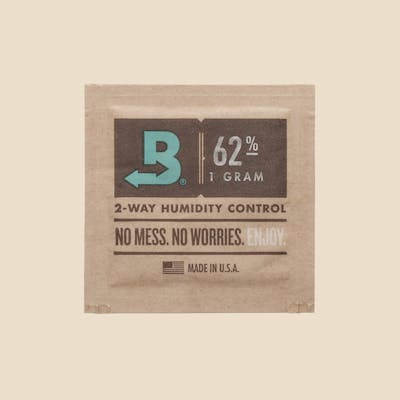 Boveda cannabis humidity packs help stabilize your flower for a consistent weight and burn, unlocking true colour, aroma, flavour while locking in THC. These natural-ingredient packs are made from a saturated formula of water and salt, releasing or absorbing moisture as needed. In this case, the 62% pack will absorb water-vapor from your flower to stabilize it. These RH packs are long-lasting when in a sealed container, and become rigid once they need replacing. It's that simple!