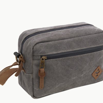 With lots of pockets and a bit of padding, the Stowaway is perfect for holding all of your travel essentials. The Details: -Smell proof and water resistant -Carbon Filter System -Rubber-backed exterior -Custom protective lining -Padded -Waterproof zipper -Lockable -Inner divider -External zipper pocket -Genuine leather accents -Metal hardware -Dimensions: 11" x 6” x 5" -Volume: 5 L