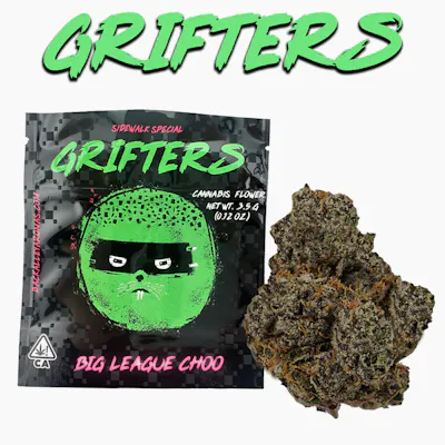 Big League Choo 3.5g by Grifters offers the same flavorful profile of sweet fruit and candy notes with smooth smoke. This indoor-grown flower provides balanced effects with a mix of uplifting energy and gentle relaxation.