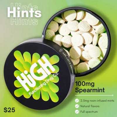 Spearmint Hints | Mints | 100mg - 40ct | High Functioning Drug Co.