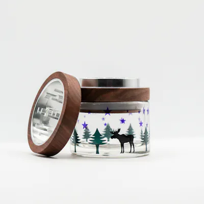 Cirrus Glass Grinder, thoughtfully engineered for the perfect grind, elevated through design. Precision aluminum teeth and handsome black walnut work in harmony. Our Maine Moose design pays homage to the great state of Maine, boasting beautiful rocky coasts, towering pines, and majestic Moose. Hand-crafted for the perfect grind.