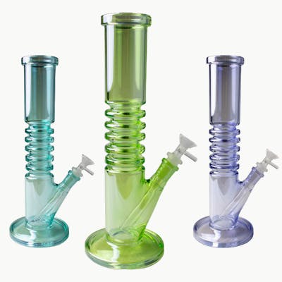 The 12” Pastel Ribbed Straight Tube combines classic straight-tube performance with modern pastel iridescent style. Built from durable 5mm thick glass, this piece delivers solid weight, stability, and everyday reliability Key Features: Height: 12 Inches Thickness: 5mm Heavy-Duty Glass Base: Wide Disc Base for added stability Design: Ribbed Neck with Ice Catcher / Built-In Hand Grip Joint: 45° 14mm Female Joint Downstem: Glass-on-Glass Diffused Downstem Includes: 14mm Male Flower Bowl Finish: Pastel / Iridescent Colorways