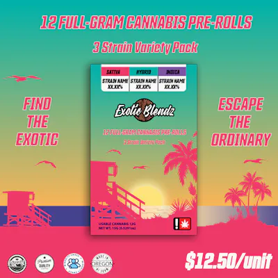 Preroll Pack ~ Exotic Blendz ~ 12pk Full Gram ~ Lizard Breath (S) x Jelloz (H) x Insane Pound Cak...