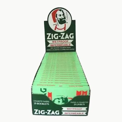 Zig Zag green wetproof paper comes in 25 booklets of 100 papers each. This paper is thick for extra-slow and steady burning. These have cut corners for an easy rolling experience. The singlewide measures 70mm X 38mm Compact, lightweight, and very easy to fit in your pocket Special adhesive gum that provides a perfect roll everytime Made using natural flax plant fibers and 100% Natural Gum Arabic. Zig Zag provides a even-burning paper designed to enhance your experience.