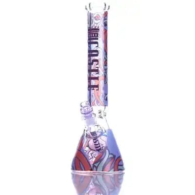 This bong comes equipped with a deep bowl that will give you a nice, even burn. Specifications Thickness: 9mm Tube w/ 12mm Base Height: 16 in / 40.50 cm Joint Size: 19mm Female Tube Diameter: 50mm Downstem Length: 5.75 in / 14.5 cm Included: Bong With Colored Glass Downstem and Bow Octopus beaker is elegant and durable. Made of borosilicate glass, this bong sits on a 12mm thick and 5 inch wide base making it a sturdy option for our smokers. The Octopus beaker is made with a decal that is bonded to the glass and will not be easily removed. The decal also features a decal window below the downstem joint so you can still know how clean your piece is with a full wrap.