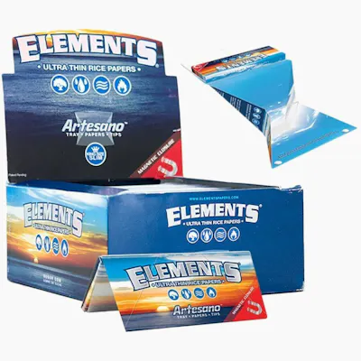 Experience ultimate portability with Elements Artesano King Size Slim – the all?in?one rice paper kit. Each slim booklet includes ultra?thin rice rolling papers, pre?cut filter tips, and a spring?loaded tray hidden under the magnetic cover. Designed for pure, chemical?free enjoyment, these papers offer slow, even burns with minimal ash. King Size Slim: 33 ultra-thin rice papers per pack. 33 pre-folded filter tips included. Built-in, pop-out rolling tray. Pure rice paper with sugar gum and criss-cross watermark. Burns clean with near-zero ash residue.