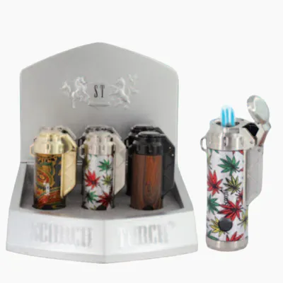 Elevate your cigar experience with the Scorch Torch 61806 — a powerful, reliable triple torch lighter housed in a sleek cylindrical body. Designed for optimal control, it features a smooth side press ignition and a convenient built-in cigar punch. Perfect for aficionados and casual users alike, this refillable butane lighter delivers consistent performance with every light.Triple torch flame for fast and even lighting. Built-in cigar punch tool for added convenience. Smooth side press ignition system. Refillable butane (fuel not included). Assorted finishes and textures for display appeal.