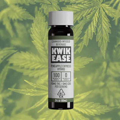 The one that started it all. With a delicious lemon-pineapple tang and a hearty infusion of Pineapple Express terpenes, Kwik Ease provides the perfect gentle jolt to carry you through a busy afternoon or a late night out. No caffeine, no crash, no problem. -- 2 ounce beverage. 100mg THC. Flavor: Lemon Pineapple. -- Low calorie. Strain-specific with Pineapple Express. Easy dosing - 5mg per capful. Water-soluble. In-house nanoemulsion process. Fast-acting. -- Great to use for anxiety, stress, & pain relief during daytime activities with no caffeine and no crash. -- Ingredients: Filtered water, cane sugar, lemon juice, natural flavor (including pineapple express hybrid terpene blend), MCT oil, orange oil, cannabis oil, food starch-modified, citric acid, sodium benzoate, potassium sorbate, orange extract