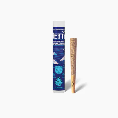 Berry on the inhale, citrus on the exhale: Blue Dream brings that familiar euphoric calm, while Tropicana Cookies adds a bright, sativa-leaning spark without the jitters. Infused with Jetty High THC. Classic strains you know and love. High potency oil paired with premium small buds. Cryoinfused to preserve more terpenes, cannabinoids, and other natural plant compounds, giving you amazing flavor and a smooth smoke from start to finish. Top-shelf bud. Curated flower and oil pairings. Supercharged Potency. Find your flavor with Jetty Pre-Rolls.