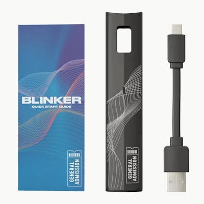 Something this small never hit so big. Pefectly tuned for the best tasting blinkers possible, this battery comes powered by a 300mAh battery that is usb-c chargable for all day use. General Admission provides a perfectly tuned vape experience. Each pod is optimized for the best flavour and potency with none of the mess. Built for the best blinkers of your life, you'll be blowing clouds in no time. Portable potency in the palm of your hand. Sold as a display of 6 Blinker batteries. *Please Note: Blinker Pods are sold seperately. Blinker batteries are only for use with 1ML or 0.3ML Blinker Pods. Blinker POD Battery Features: Use: Concentrates Compatible with 1ML or 0.3ML Blinker Pods Battery Capacity: 300mAh Inhale-Activated Convenience Smartpod Technology USB-C Charging Battery power: 8.0W Resistance: 1.25 ? ± 0.15? (Distillate Oil) Atomizer: Ceramic Dual Airflow Store & Operate in Room Temperature for Optimal Performance 1 Year Limited Warranty
