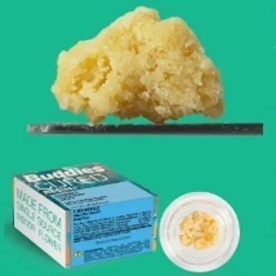 Take your next dab, bowl, or joint to another level with Buddies Cured Resin Crumble. Bringing the full-spectrum punch of premium indoor flower in a user- friendly texture. Available in a variety of delicious strains, our versatile crumble makes for an ideal topper to a bowl or joint and is great for low-temp dabs too. It’s high time you taste the sweet rewards of Buddies Cured Resin Crumble.