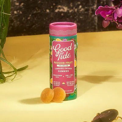 Take your mellow to the next level with Good Tide Passion Fruit THC:CBD:CBN gummies. An Indica single-strain rosin is enhanced with an extra dose of CBN and CBD’s relaxing properties and the tropical delight of passion fruit flavor to help you drift into a world of dreams.