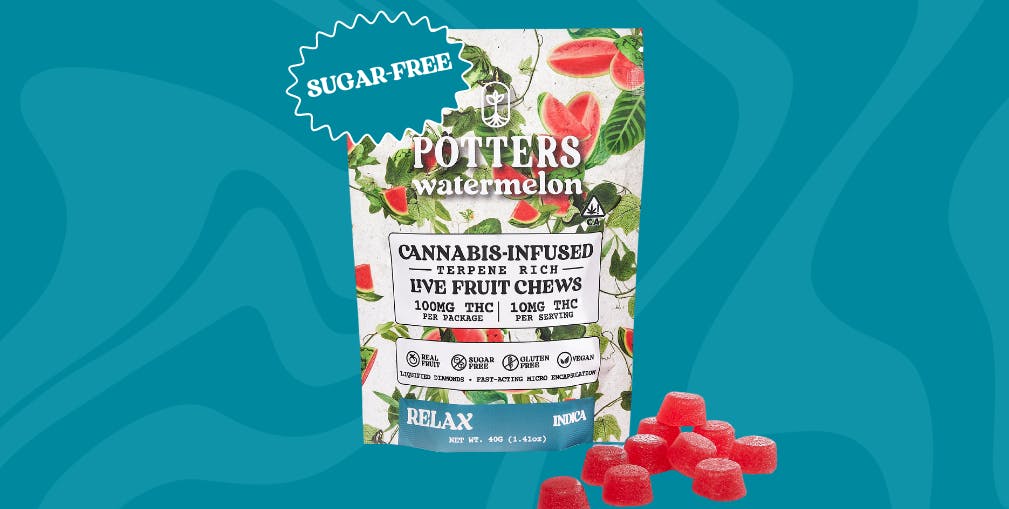 Potters - Watermelon - Indica - Sugar-Free Live Resin Fruit Chew - 10 Pack