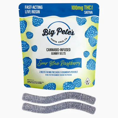 BIG PETES - BLUE RASPBERRY - SATIVA - ROSIN SOUR BELTS - 100 mg - 2 Pack