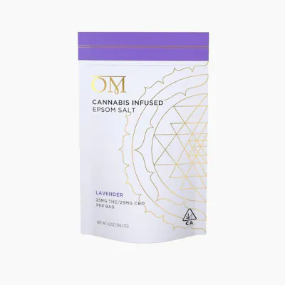 Soothe aches and pain with OM’s infused Epsom Salts—a nurturing blend of magnesium sulfate, full-spectrum Cannabis, moisturizing oils, therapeutic grade essential oils, and nothing else. Lavender essential oils help calm the nervous system and ease people to sleep gently while alleviating aches and pains. Ingredients: Epsom Salt, Full Sun Cannabis Flowers, Apricot Kernel Oil, Jojoba Oil, Avocado Seed Oil, Argan Oil & Essential Oils