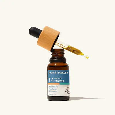 Our 1:1 Tincture is balanced with equal parts CBD and THC and is great for those looking for whole-body comfort and a balanced state of mind. Ideal for cannabis consumers who are comfortable with THC. Crafted with the utmost simplicity, containing only two ingredients: MCT oil and cannabis, this tincture can start to take effect within just 15 minutes, offering a natural and quick-acting solution to enhance both body and mind.Papa & Barkley’s tinctures are vegan and fast-metabolizing, with a customizable dosage experience, carefully crafted with whole-plant extraction. Our solventless, chemical-free infusion process preserves the plant’s full spectrum of cannabinoids, terpenes, and phytonutrients for maximum therapeutic benefits.15ml Tincture: 450mg (225mg CBD, 225mg THC)Ingredients: MCT Oil, CannabisContains: Tree Nut (Coconut)Does not contain: Soy, Peanuts, Wheat, Gluten, Dairy, Preservatives, Artificial Colors, Artificial Flavors or Sweeteners