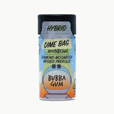 THC9: 27.32% | THCA: 13.8% -- Prepare for liftoff with Dime Bag Moonbeams! These five half-gram diamond moonrock-infused prerolls are like a cosmic journey for your senses. Crafted from premium whole nug flower infused with liquid diamonds, terps, and kief, each joint reaches stratospheric potencies while delivering an unbelievably smooth and flavorful smoking experience. Designed with portability in mind, this pocket-friendly five-pack of 0.5g joints is perfect for those who are always on the move or for sharing intergalactic vibes with friends. Elevate your smoking experience to new heights with Dime Bag Moonbeams – where every puff is a journey to the stars.