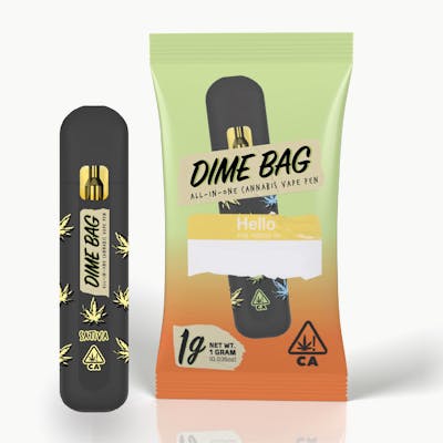 BetaCaryophyllene: 23.24mg/g | CBC: 10.18mg/g | CBG: 22.49mg/g | Humulene: 9.86mg/g | Limonene: 12.45mg/g | THCV: 8.35mg/g -- The Dime Bag all-in-one rechargeable vape, boasting big clouds, big flavor, and HIGH potency! Our rechargeable vape pen is crafted with Dime Bags pure cannabis oil and tasty terpenes offered in a variety of seasonal mouthwatering strains.
