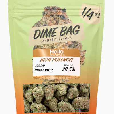 THC: 27.42% Doses: 7 G -- All Dime Bag flower is grown in sunny California bringing you incredible value at an affordable price. Larger nugs and bag appeal are sure to please anyone looking to have a smooth smoke & experience.