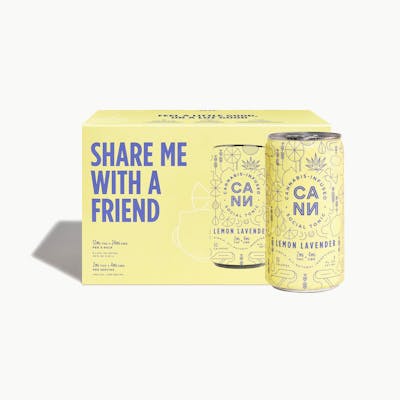 CBD: 3.85mg | THC: 1.8mg | THC9: 1.8mg -- Cann’s cannabis-infused social tonics are microdosed with THC & CBD, perfectly crafted to give you a light, refreshing buzz within 10-15 minutes. This version of Cann’s cannabis-infused social tonic is made with lemon juice from Sicily and infused with aromatic lavender. With the same balanced uplifted feeling as alcohol, but with 5 all-natural ingredients, 30 calories, and no hangover the next morning, Lemon Lavender is the perfect substitute for that glass of wine or can of beer.
