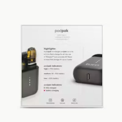 podpak // battery case + pen // black // flavor pods sold separately 2x the grams 2x the flavors 2x the strains 2x the clouds 2x the journey 2x the TRUtaste™ 8x the battery life A new era is here. Double up on everything you love about vaping with our brilliantly designed podpak kit crafted from high-end, ultra-durable materials in a compact, sleek package that fits slyly into your life and pocket. With space for your podpen (included), main flavor, and a spare, you’ll always be ready to rip. highlights podpak case holds 1 podpen vape + 2 pods podpen flash-charges in 5 minutes podpak battery charges podpen 8x per charge Compact, discreet, mess-free High-grade stainless steel Keeps aroma contained Pocket friendly what's in the box? podpak charging case podpen (battery included) usb-c charging cable instruction manual how to work your new turn tech Remove podpen from podpak Pop in the pod of your choice Inhale, exhale, enjoy life podpak and podpen arrive charged and button-free for immediate satisfaction fun facts about your new canna-panion podpen is equipped with TRUtaste™ thanks to top-shelf ceramic hardware that produces perfectly calibrated oil at a consistent rate with ZERO transfer of heavy metals, cotton, or glues — because there are none podpak stores your pen and two pods for clean, convenient, pocket-friendly fun! Keep the lid closed to minimize odor