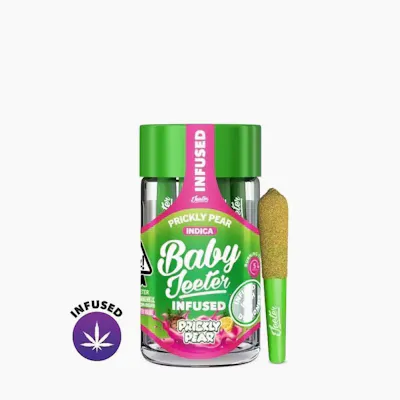 THC: 41.4% Doses: 2.5 G -- Prickly Pear Baby Jeeter Infused | 5 0.5G Joints 2.5G Total | Indica | Premium Flower Infused with THCa Diamonds and KiefAt the core of Jeeter is our Culture .. a culture of love, passion and innovation. We value relationships and the culture of our company can been seen in everything we do from our products, to our brands, to our facilities, to our love for our customers and each other.