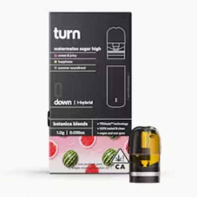 CBD: 0.19% | THC9: 85.76% | THCA: 0.61% -- Vacation’s all I ever wanted…! Sweet and refreshing with a distinctive fruity flavor that’ll whisk you somewhere tropical, this smooth operator has been known to relax and stimulate. Get ready to have a deep philosophical chat or bust out the hammock and watch the clouds go by. This versatile strain is popular for sparking new ideas or getting a fresh perspective on old ones. farm to table - happiness - summer soundtrack turn botanica blends You'll only get clean, fresh, guaranteed pure California goodness from seed to pen. Choose from a wide selection of our high potency, exclusive, hand-curated botanica blend formulations to get the perfect floaty feeling you're looking for. // oil highlights // Single source California fresh grown Tested and verified clean Vegan, non-GMO, ultra pure Natural botanical terpenes turn pods are crafted with care + maximum intention What's worse than incredible oil ruined by a pen that's too hot or not hot enough? Paying $$ for it. We engineered turn pods to treat your oil like the VIP it is. Precise heating tech treats various viscosities. No buttons, no guesswork, no user error. Perfectly calibrated design for free and easy airflow.
