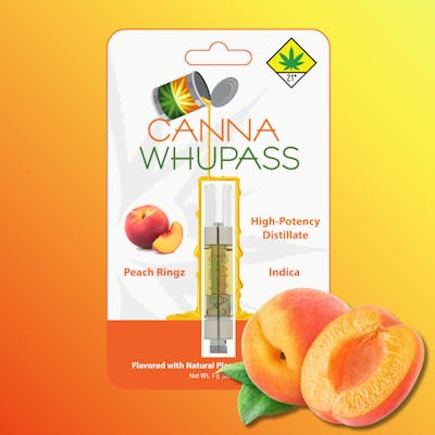 Peach Ringz (Bubba Kush) Consisting of nearly 100% THC cannabinoids, plant-derived terpenes infuse our distillate with strain-specific cannabis terpene profiles. Our vape cartridges are the debut product in the Canna Whupass line-up. Produced in our molecular still, we combine distillate with flavors from Cannaroma to make cartridges of known purity with superior quality and flavors. Utilizing only food-grade compounds of known purity to make all flavors, the cannabis terpene profiles and flavor constituents from other botanicals layer together with potent cannabinoids to create the phenomenon known as the "entourage effect". Entourage effects occur when cannabinoids and terpenes work synergistically in the body to produce a different biological response than cannabinoids would alone. While tetrahydrocannabinol (THC) is typically considered the primary active component of cannabis, other cannabinoids, like cannabidiol (CBD) and terpenes, can also modulate and fine-tune the effects of THC.