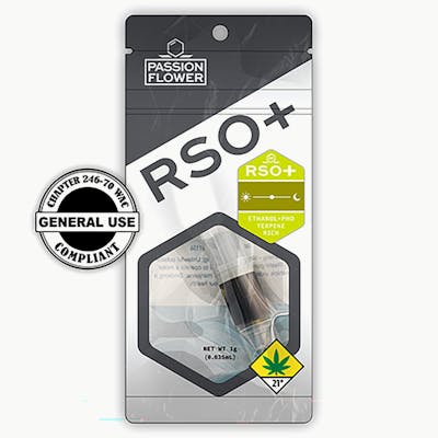A new standard in full-spectrum wellness. Passionflower’s RSO+ combines food-grade ethanol and PHO extraction for a rich extract with unmatched purity and depth. This dual-extraction method preserves a fuller spectrum of beneficial compounds—cannabinoids, terpenes, triterpenoids, flavonoids, and more—offering a potent, well-rounded experience that redefines what RSO can be.