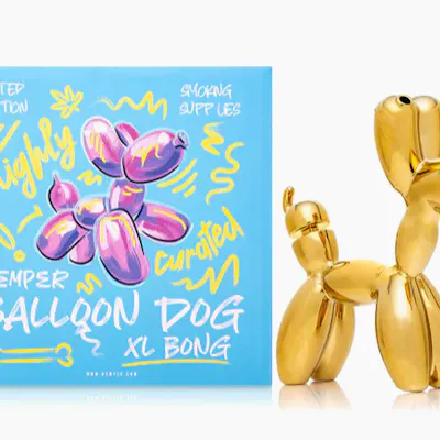 The Balloon Dog XL Bong brings a bold twist to smoking with its playful, yet upscale vibe. Standing tall in a glossy gold electroplated finish, it’s like a high-end art piece that doubles as a showstopping bong. You hit from the ear, and the tail acts as the bowl, while the smoke percolates through the balloon dog’s body. This stylish, standing dog looks just like a fancy décor piece, but it's packing serious smoke sesh potential. SPECS: Height: 7.5" Width: 2.6" Length: 8" Thickness: 5mm 45 Degree Recessed 14mm Tail Joint Diffused Downstem Perc in back legs