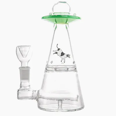 Beam up your terps with the HEMPER UFO Vortex Bong! This UFO-themed rig is designed for the ultimate flavor ride into space. This dual-chamber rig includes both human AND hidden alien technology to cool your vapors while preserving your terpenes. In the bottom chamber, we've added the classic 6-slit inline perc for maximum diffusion, but after that, it gets a little bit alien... In the upper chamber, we've included several venturi inlets to pull in and spin air into a vortex of smooth and flavorful vapor. If you're looking to abduct some serious terps, this is the rig for you.