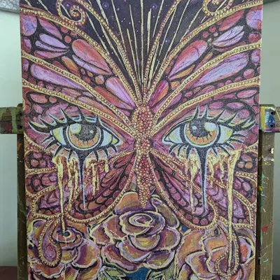 Butterfly Eyes 11x14 Hand Embellished by the Artist Canvas Print $170