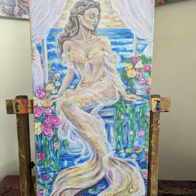 Sunset Siren 10x20 Hand Embellished by the Artist Canvas Print $170