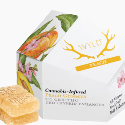 HYBRID: (10 x10MG : 5MG CBD) 100mg CBD:50mg THC per unit 10mg CBD:5mg THC per serv. New to edibles? Our Peach 2:1 CBD:THC gummies are made with more CBD than THC, making them a great option for easing into edibles. They are made with real fruit and enhanced with a balanced Hybrid terpene profile that may assist in creating a sense of ease and overall well being. It’s a little like a vacation for your body. Enjoy! Ingredients: Tapioca Syrup, Sugar, Water (H20), Peach Juice Concentrate, Gelatin, Pectin (Pectin, Sodium Citrate), Natural Flavoring, Coconut Oil, Citric Acid, Cannabis Extract, Sunflower Lecithin Contains: Coconut