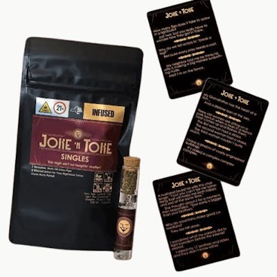 Joke 'N Toke – Singapore Sling – Crushed Moonrock Chillum – 0.5g Power meets portability in the Joke 'N Toke Singapore Sling Crushed Moonrock Chillum—a compact 0.5g pre-loaded chillum packed with potent, crushed moonrocks for a fast-hitting and flavorful smoke. This all-in-one experience is perfect for on-the-go sessions without sacrificing strength or taste. Infused with the tropical essence of Singapore Sling, this chillum delivers bold flavor with notes of sweet citrus, berry, and exotic spice, balanced by the unmistakable punch of moonrock-grade potency. Whether you're winding down or looking for a heavy-hitting head change, this chillum hits hard and smooth. Product Highlights: Strain/Flavor: Singapore Sling – Exotic and fruity Type: Crushed Moonrock – infused and potent Format: 0.5g Chillum – pre-filled, ready to use Effects: Fast-acting, euphoric, deeply relaxing Best For: Portable potency, solo sessions, high-tolerance users Terpenes: Beta-Myrcene: 0.2202% Farnesene: 0.2302% trans-Caryophyllene: 0.2383