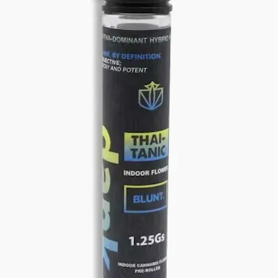 DANK brings you THAI-TANIC, a 1.25g blunt that combines the invigorating energy of Sativa with subtle Indica undertones for a perfectly balanced smoke. This premium preroll delivers an uplifting, cerebral high that sparks creativity and focus while maintaining a smooth, relaxing finish. Expect bold tropical and citrus flavors with earthy, herbal notes that create a complex and satisfying experience from first puff to last. The THAI-TANIC strain is known for promoting euphoric, social vibes—ideal for daytime adventures or creative sessions with friends. Each blunt is expertly rolled for an even burn and consistent delivery of potent effects. Whether you're seeking energy to power through your day or a mood boost to elevate any occasion, DANK's THAI-TANIC 1.25g blunt offers the perfect companion for cannabis enthusiasts who appreciate quality, flavor, and powerful Sativa-dominant effects in a convenient, ready-to-enjoy format. Terpene Profile: Beta-Caryophyllene: 0.31% Linalool: 0.15% Humulene: 0.12% Limonene: 0.07% Total Terpenes: 0.87%
