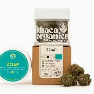 Zoap is a balanced hybrid that blends candy-sweet fruitiness and soft floral notes with a tropical, gas-tinged aroma. Its flavor profile offers bright citrus and cherry-berry layers over a subtle earthy base, delivering an uplifting, euphoric head high that transitions into relaxed body calm — making it well-suited for daytime creativity or mellow evening use.